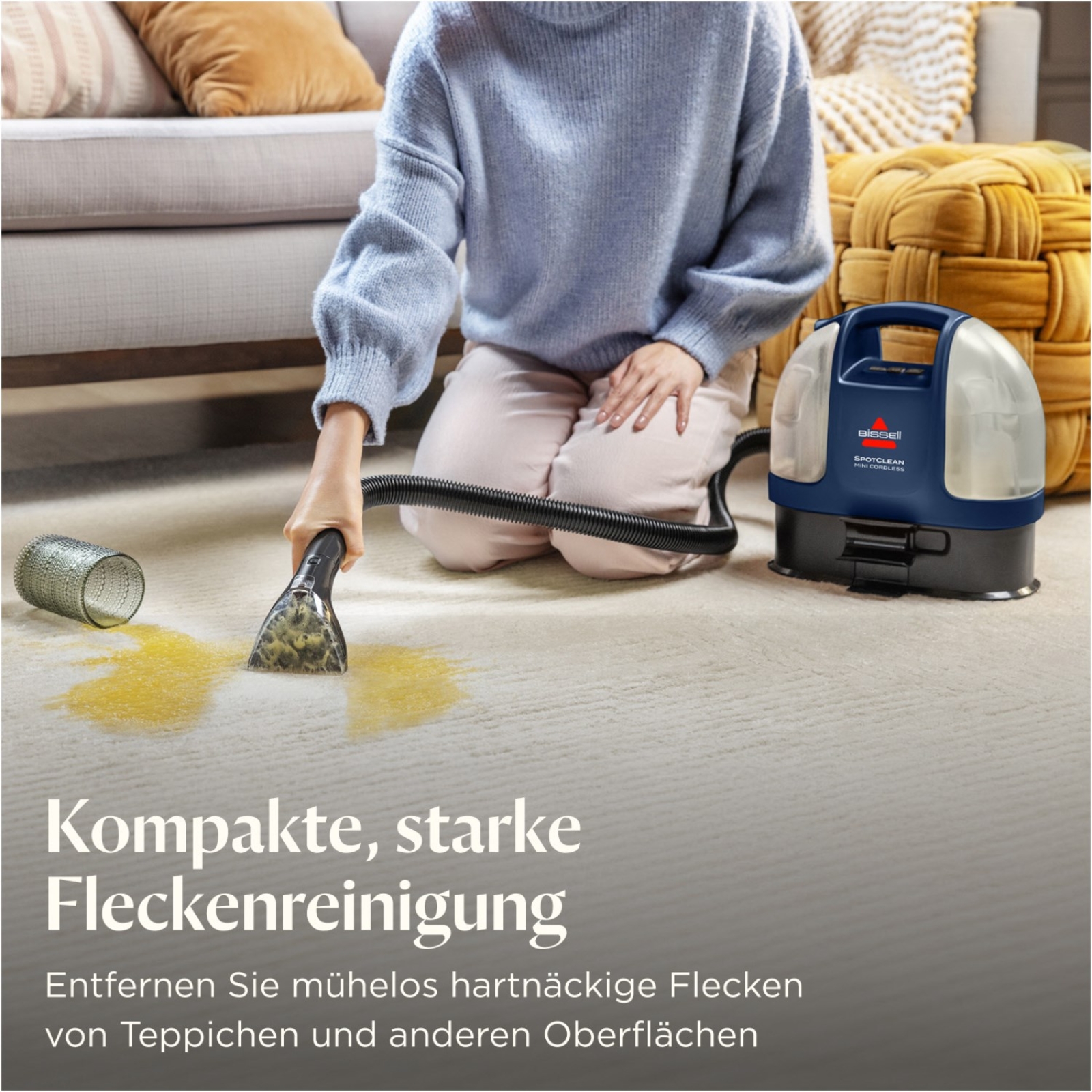 Kompakte und leistungsstarke Fleckenreinigung mit kabelloser Freiheit.