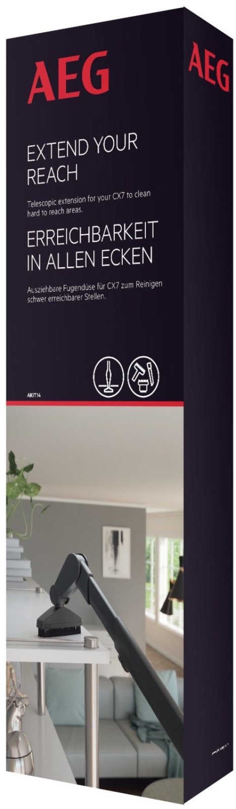 - Die ausziehbare Fugendüse lässt sich bis auf 60cm verlängern, wodurch Sie mühelos hohe Decken erreichen können.